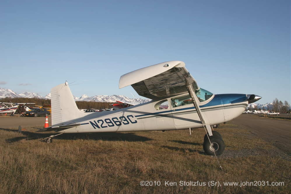 30863, N2963C, at Z41 Lake Hood Airstrip, in front of the beautiful Alaskan mountains, 5/10