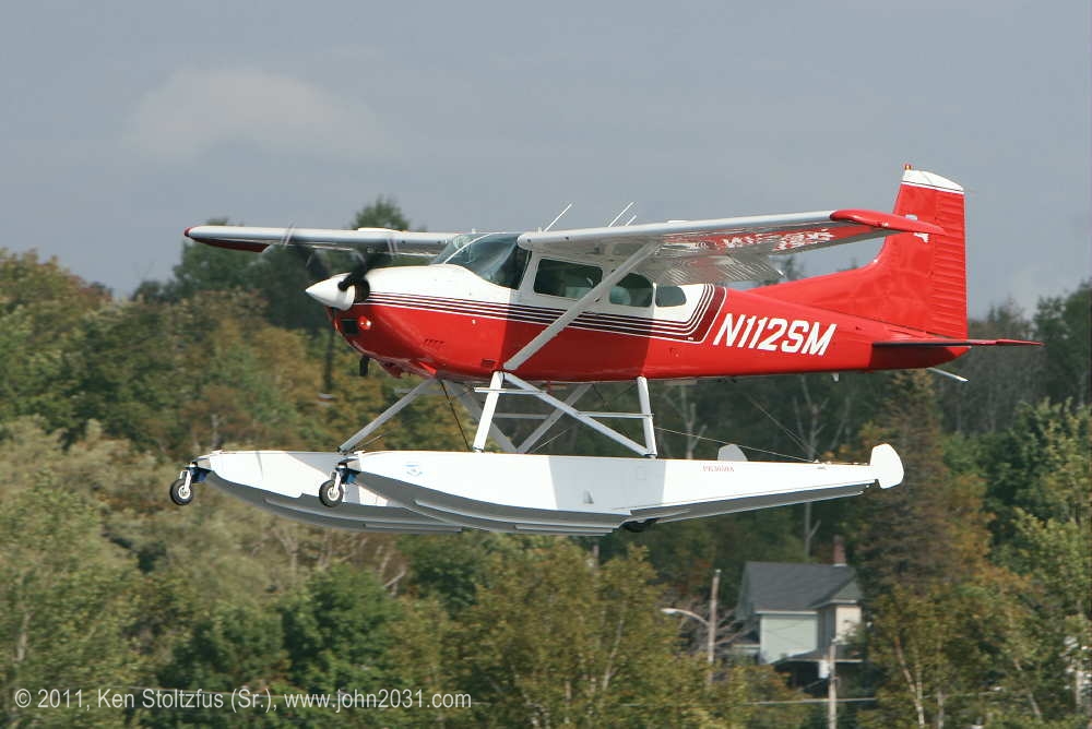 Cessna 185 N112SM "coming through" at 52B,Greenville, Greenville, ME, 9-06. Photo 2, settling into the water, and photo 3, a pretty 185 against a nice background. To Canada '09, now C-FSFX |