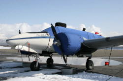 The low-cabin Volpar Twin Beechs are a cool machine and "Daniella" represents them well. It was formerly used for scenic rides over Denali National Park and to see Mt. McKinley (if it was "out"). We'll take a little walk around it and see it from different angles. These are 2008 and '10 photos and it was well covered up. |