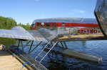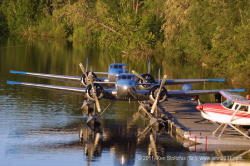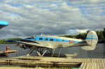 One of two civilian D-18S aircraft that we saw on floats. Most have a military history. I don't know the original U.S. registration, but in 1967 it was registered as N164U by Bailey Leasing Co., of Fort Wayne, IN. Chances are it began life as a corporate aircraft, downgraded to a freighter, and then went to the top as a floatplane.