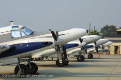 I took these photos at Los Alamitos, CA in Oct. 2003. My twin brother, Karl Stoltzfus, operated five turbine Beech 18's on various government contracts and at the time they were being used for Med Fly control. I had asked Karl how long the five would be together and he said, "Not long!" Oh!! They are a unique airplane and rarely do you find five Twin Beech's in one place. It sounded to me like a quick trip to the west coast.