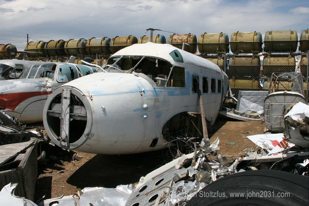 I happened upon this E-18 at Falcon Field. It's obviously a freighter, and while I can't find an accident report this looks an awfully lot like a groundloop repair! |