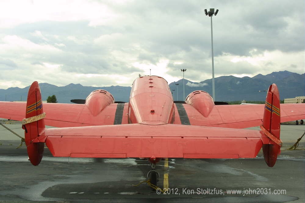 I saw this beauty in a 1940-50's D-18 paint scheme, on a couple of trips to Alaska. There's a lot of red here! It has a round top, bottom hinged cabin door, and according to this 2006 info that I found online, it was never used for cargo. |