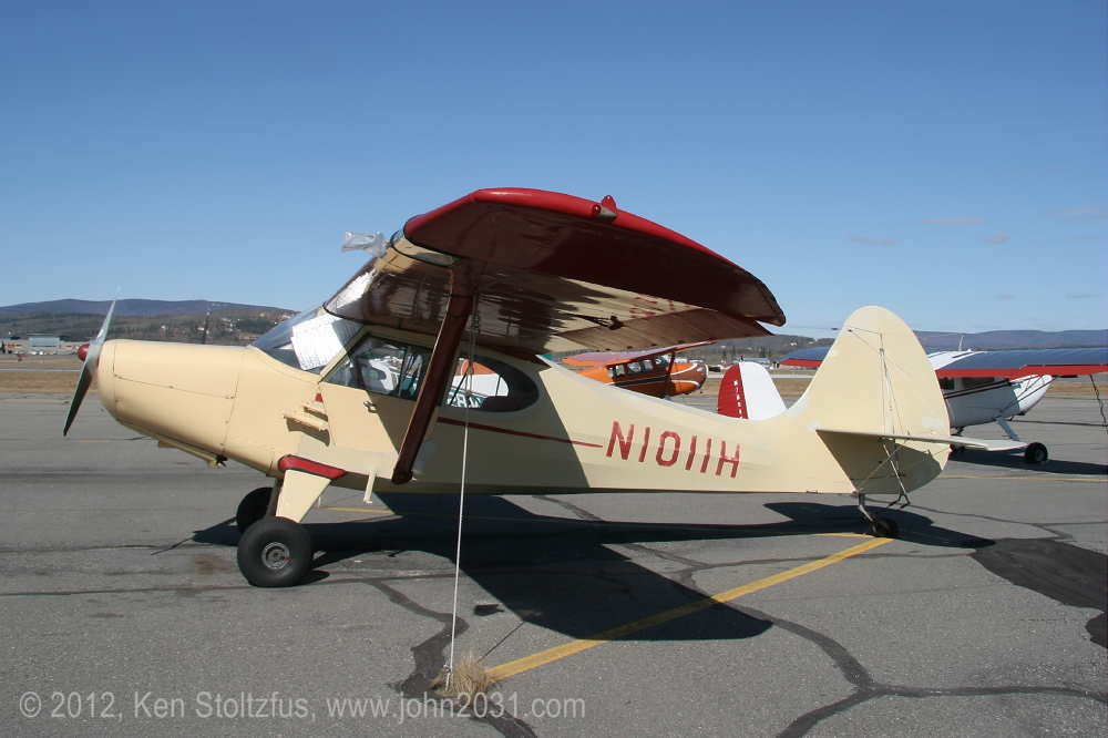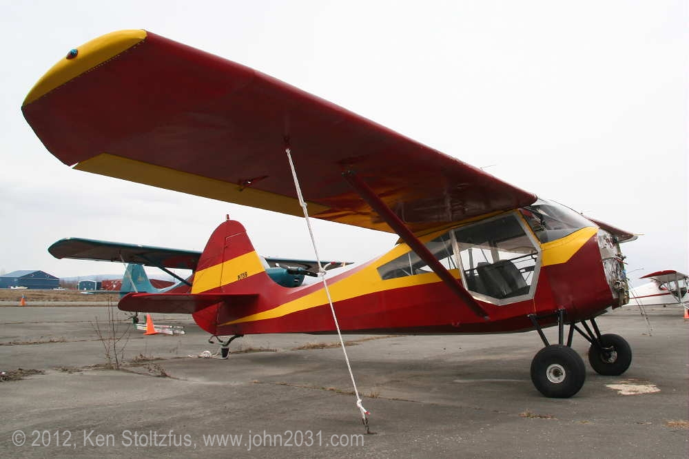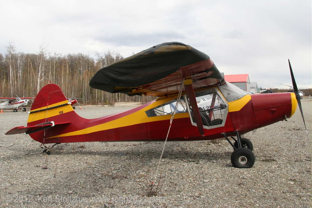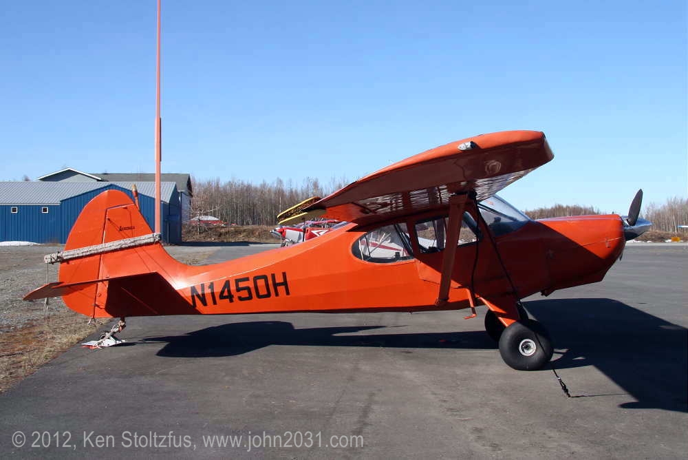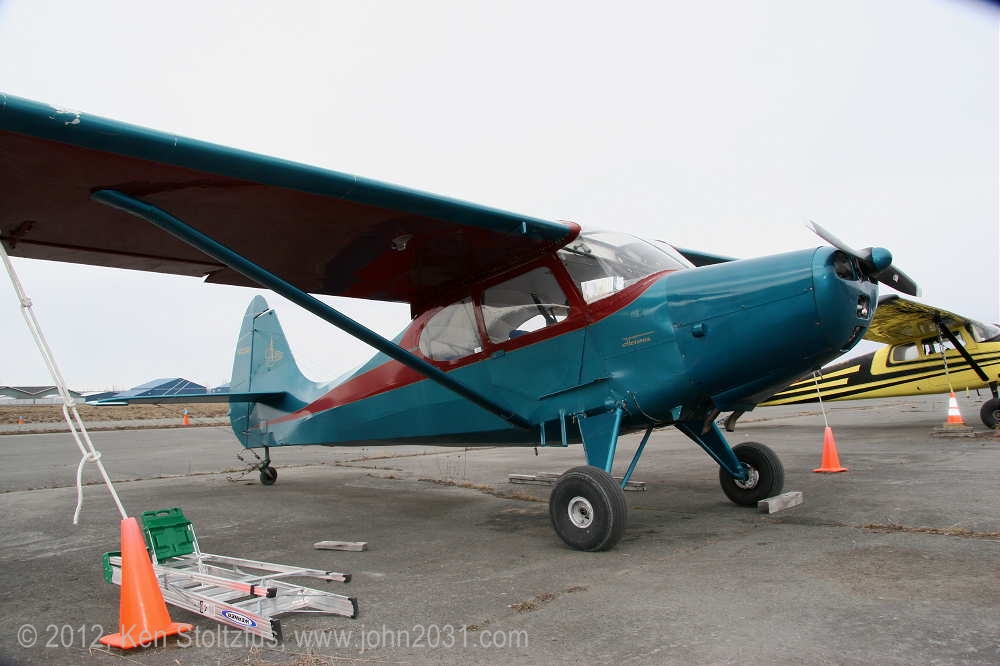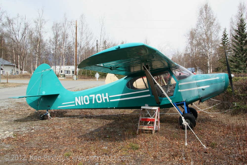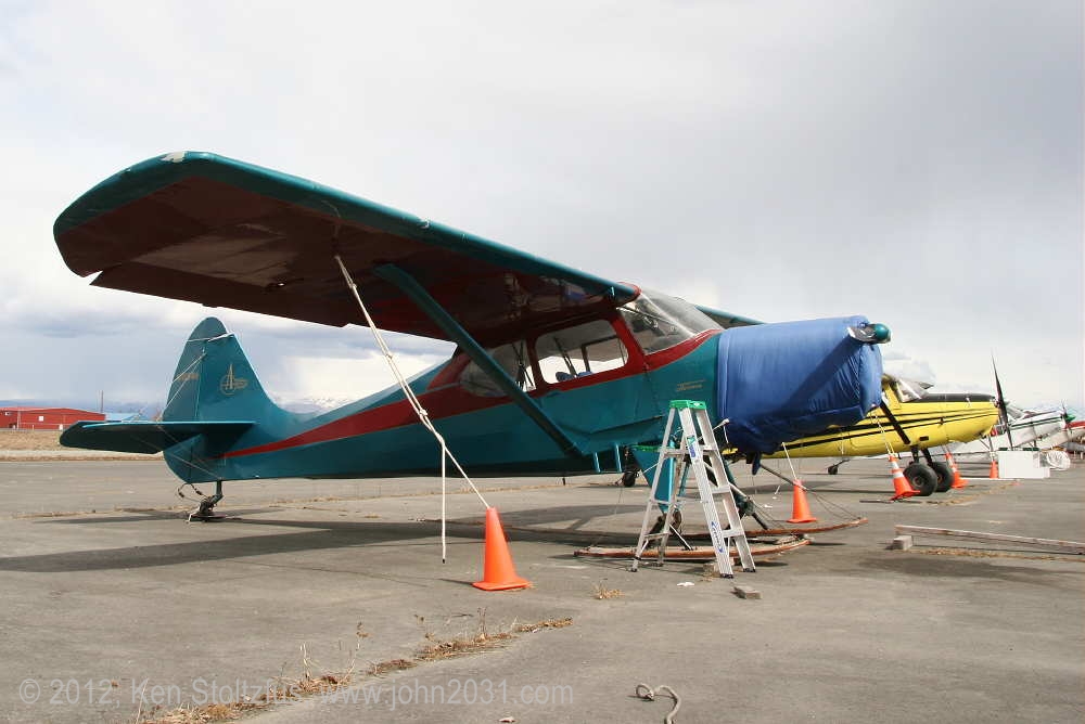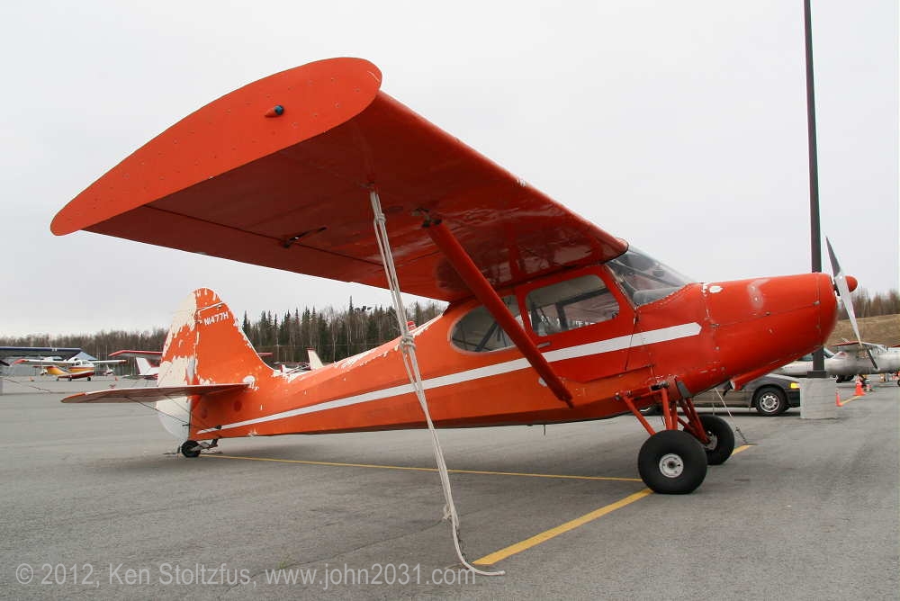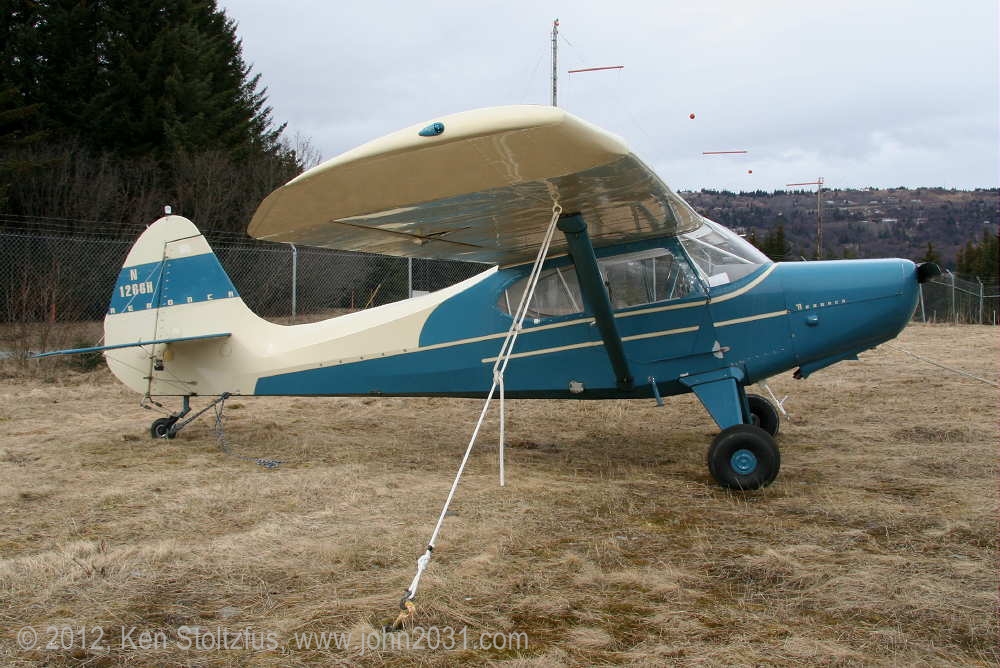 1949 Aeronca Sedan N1354N, 15AC-398, seemed a lot happier in 5/11 and 5/12 than it did with that one-armed look in 4/11. It's home is Birchwood Airport, PABV, AK. |