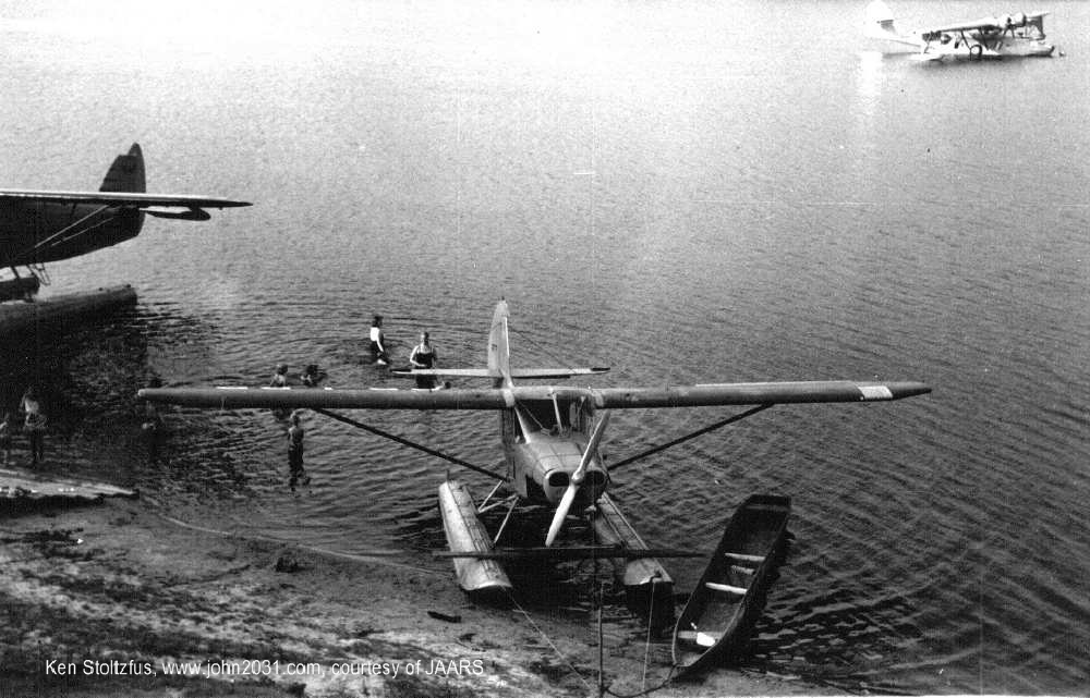 15AC-34?, N1310H, OBM-277, OB-LBP served JAARS in Peru. I have some photos from them and am trying to get more information. I'm uncertain of the CN, but interpolating from my 1963 FAA register it would be in the low 340's. Here's the same photo with one of JAARS' PBY's anchored in the background; another at the shore, and finally, waiting for action. (See also cn 288, 296 and 451) |