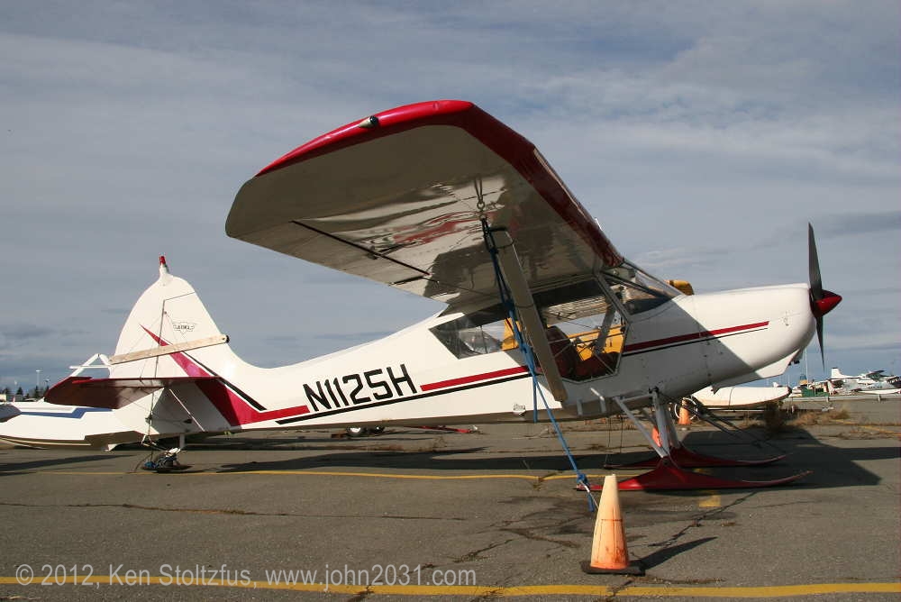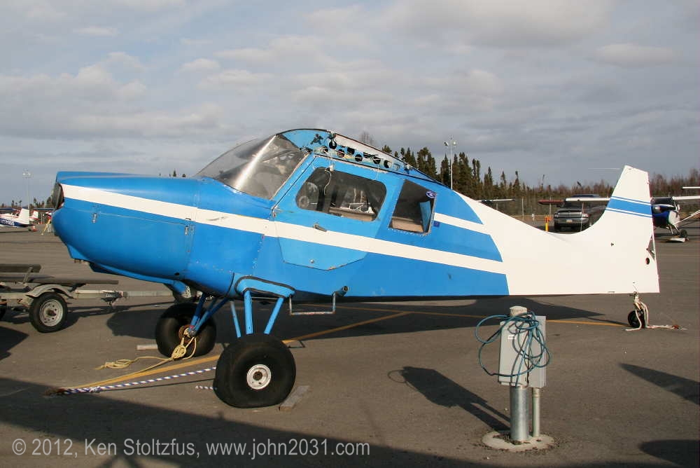 I saw this pretty Sedan in 5/10 and 5/12 at Z41, Lake Hood Airstrip, Anchorage and at Willow, PAUO.. I'm not sure if it is for work or for play but it looks like fun either way. I believe it has an O-360 Lycoming. N1283H is 15AC-299. |