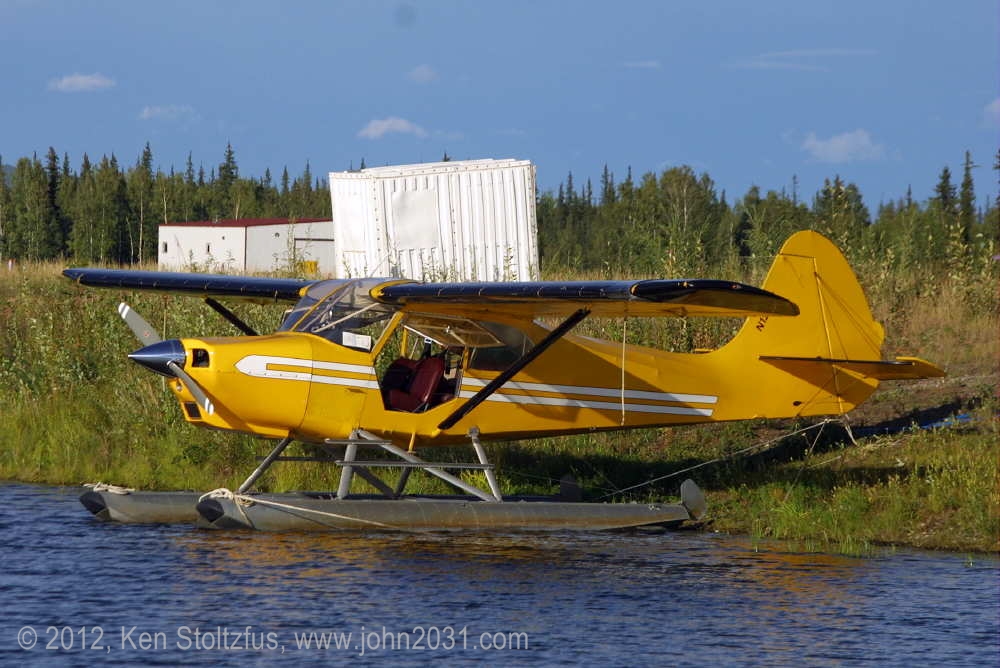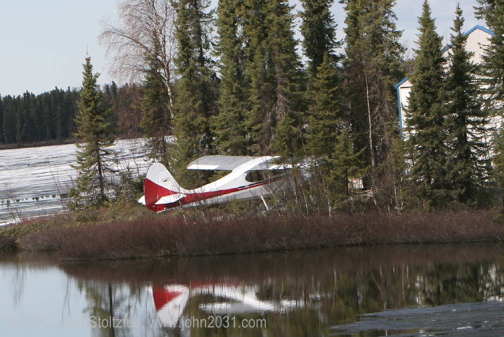 One of the nice things about Alaska is that if you go at different times of the year you get such different photos, i.e. wheels, skies, and floats. Here is '32H in a reflective moment in July 2004. |