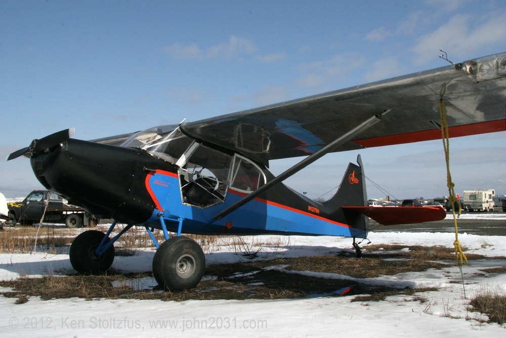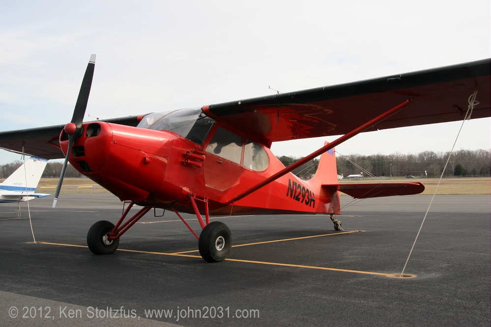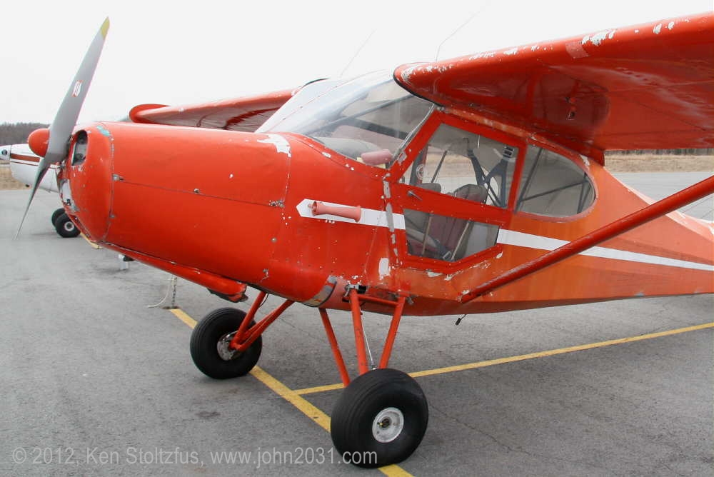 Rudderless N1293H, 15AC-311 was on the ramp at Orange, VA, 1/12. It looks "Alaskan" with it's seaplane door and bare gear legs. |