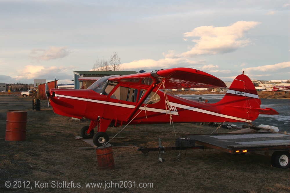 Lycoming O-360 powered 15AC-419, N1370H waiting for spring thaw at PALH 4-08; watching the sun come up in 4/10; and ready for action in 5/12. |