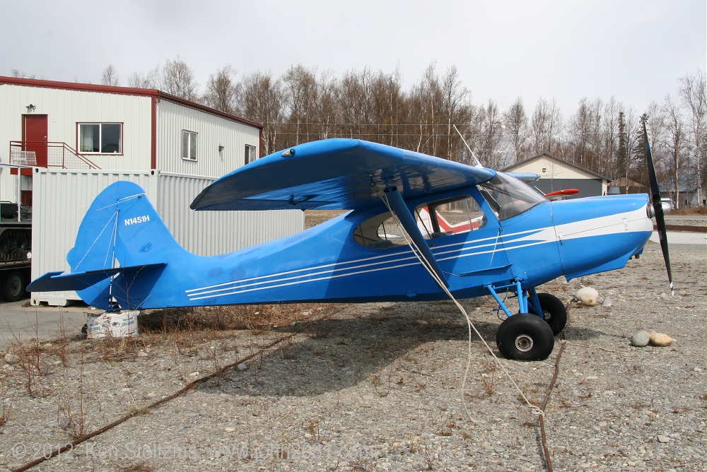 1951 15AC-545, N1477H with wing splates (spill plates), at Wasilla AK in 5/10. By 5/12 the tail gear needed some attention. It has the seaplane door but I don't see float fitting. |