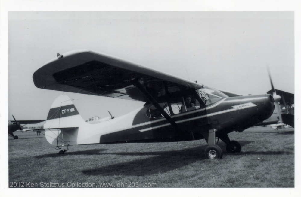 I suspect that Aeronca Sedan 15AC-61 went to Canada when new, as CF-FNM. It went to England in 1960 to become G-AREX and is current on their register. Click here for a more recent photo. In my collection, from Will Blunt . |