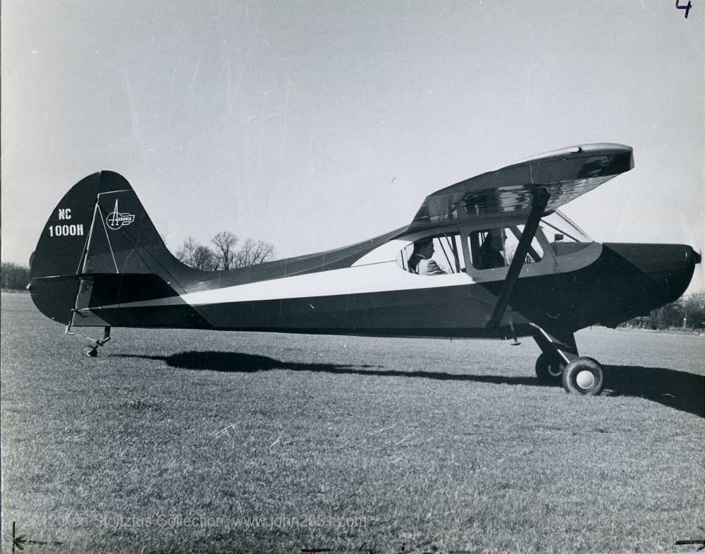 15AC-2 N1000H. I have two old 8x10's in my collection. The first was obviously used in a magazine (p.165, fig. 5-3) and has the note, "$4995.00 bare." I'll take one - - no, make that a dozen. The second is a factory photo. It is current in the FAA register. |