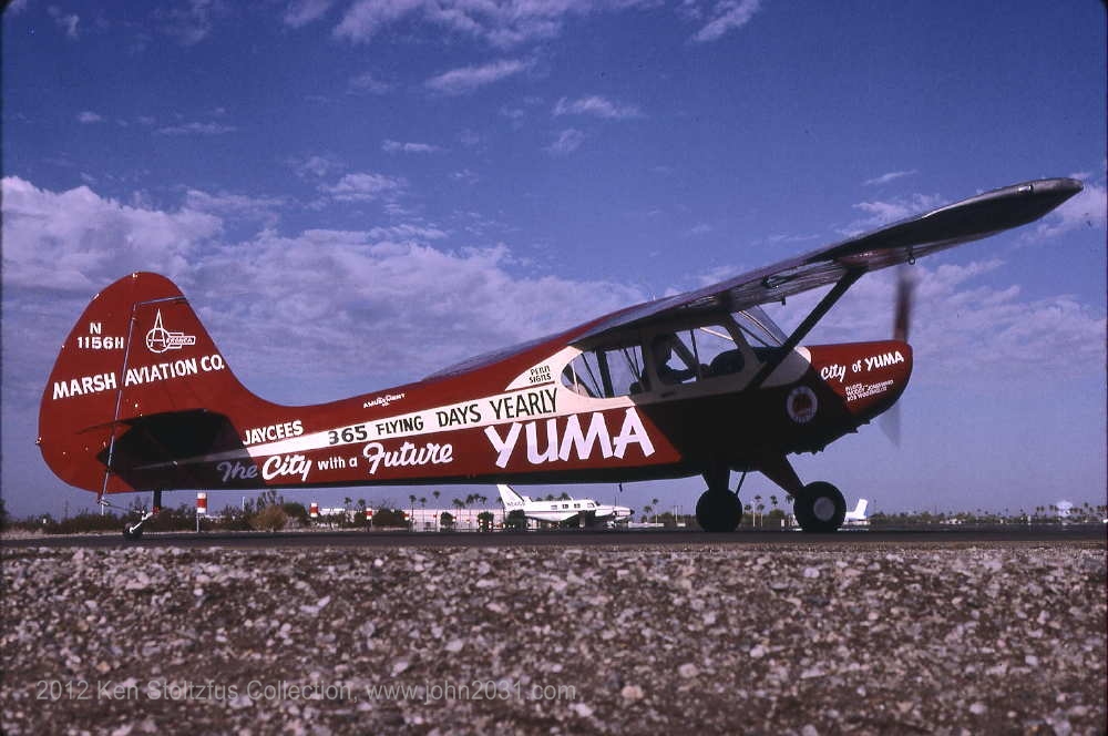 N1156H, Aeronca Sedan 15AC-156, 'City of Yuma,' to promote the flying weather in Yuma, AZ. But what's the big deal - - isn't that just like what we have here in northeast Ohio? A 9/99 slide from my collection. Here's a recent press release on '156. |