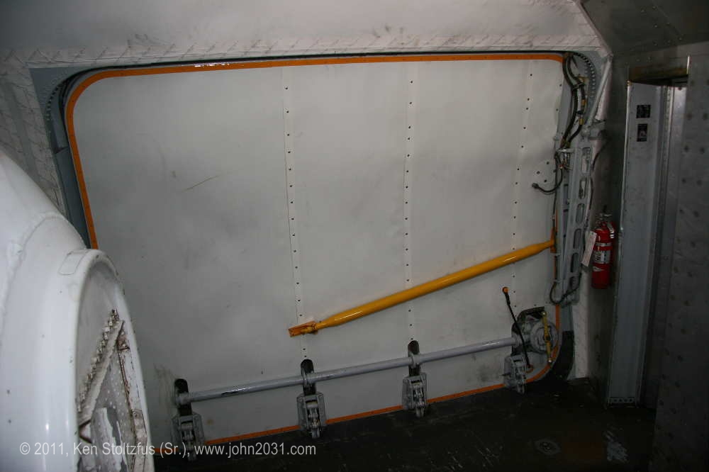 In Jan. 1950 this aircraft was converted from military to commercial type. Among other things, the glider release mechanism was removed. In July 1951 it was converted from Army type bucket seats to plush, soundproofed cabin with hat racks and floor rug. They installed a stewardess light and call system, water system, reworked the lavatories and other items for passenger use. In Nov. 1952, 23 double Payloader seats were installed. It was obviously returned to cargo configuration after that.