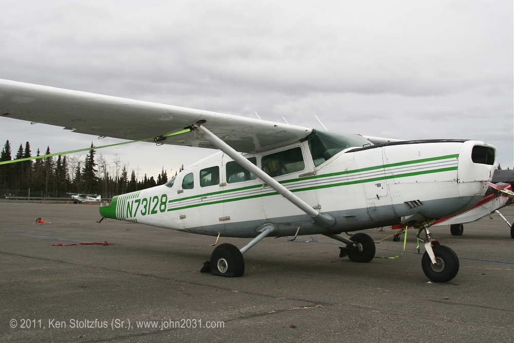 Cessna 207 N73128, 207A cn 20700562, 1979. I told my friend that there weren't many 207's built and he said, "Oh, there's a lot of them." Turns out he's been flying in "Bush Alaska" where there are many 207's, but the fact is that 119 of the 222 normally aspirated 207's on the U.S. Register are in Alaska! I guess we were both right on that one. |