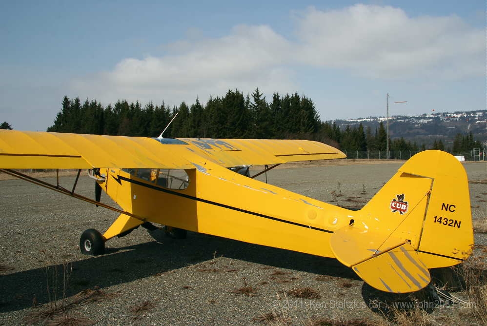 Piper J3 N7291H, 1946 with balanced elevators; an O-200 and PA-11 cowl; oversize tires and etc., at PAMR Merrill Field, Anchorage, AK 7-04 |