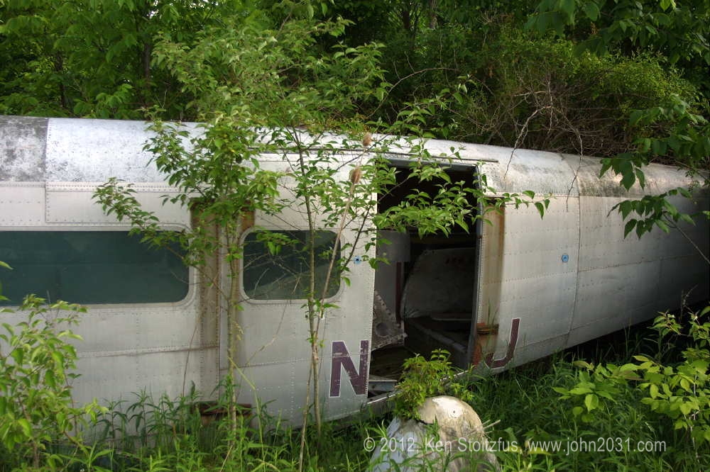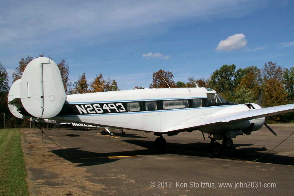 Sitting in the weeds, but as of 1/12 it is current on the FAA register. The right landing gear broke and separated from the aircraft while landing at Pittsburgh in November 1986. The game is over for this Beech except for a future as a pop can! It was a cargo aircraft.