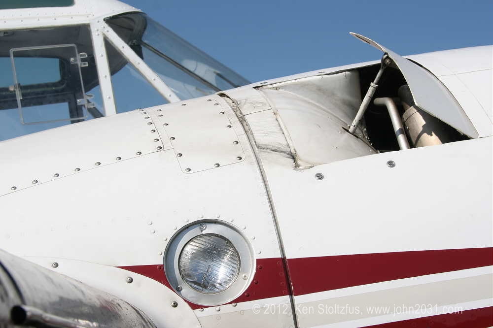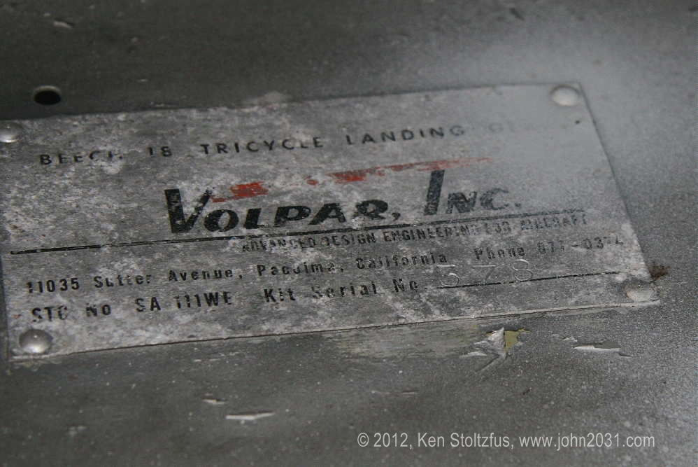 Even the factory built trigears had the nose and landing gears made by Volpar and installed under their STC. This one is kit #378, and the nose itself is serial #407. They probably sold a few to repair damaged trigear aircraft. BA-764 had the standard passenger door. |