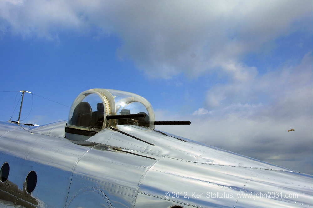 42-37601A is set up as a gunnery trainer, with the Crocker-Wheeler turret and twin .30 caliber machine guns. (Parmerter P161) Here's a shot of the back side of it, taken through the door. N7337C has had a lot of time and effort put into it and it's quite a showpiece. |